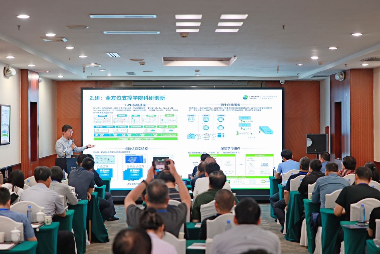深信服桌面云行业运营总监邢修发,重点分析了信服云如何从教、学、研、管全方面推进高校数字化转型升级,助力高校高质量发展。