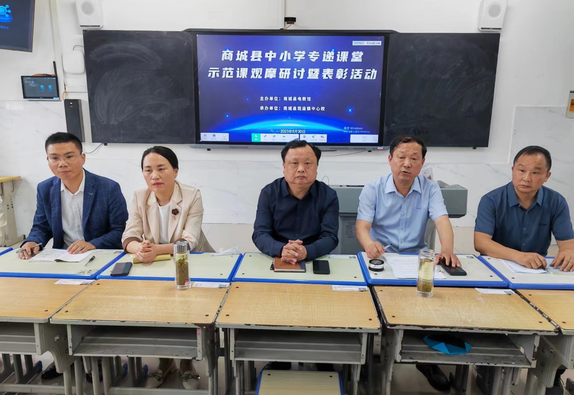 为进一步提升中小学专递课堂教学应用水平,展示试点学校专递课堂建设应用成效,提升专递课堂学科教师课堂教学能力, 5月30日上午,信阳市商城县中小学专递课堂示范课观摩研讨应用暨表彰活动在观庙中心完小举行。