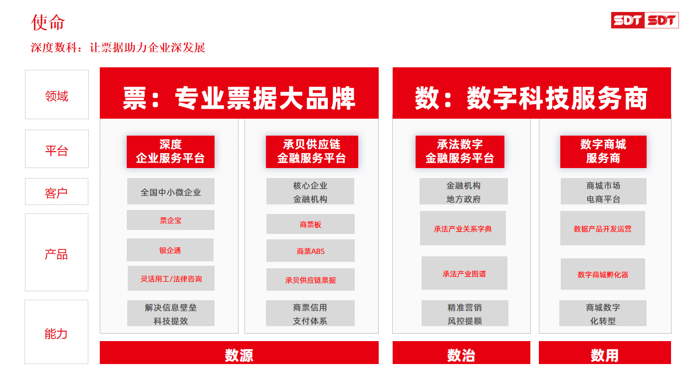 长期以来,深度数科集团积极拓展票据应用场景边界,将银行承兑汇票、商业承兑汇票等各类票据与实体产业紧密相连,以满足不同类型企业的多样化需求。深度挖掘中小微企业的需求。