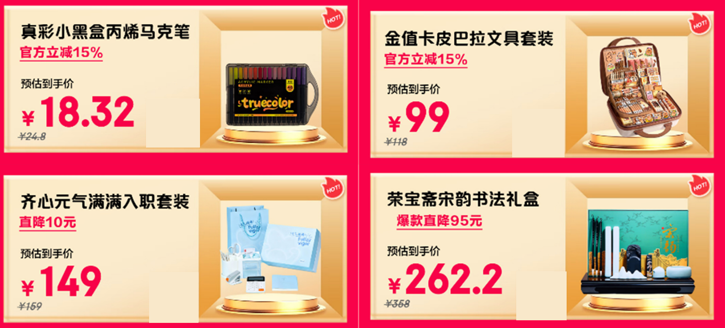 除了基础的书写与收纳,趣味学习与办公也需要专属好物!学生党做笔记、职场人设计创意方案,真彩小黑盒丙烯马克笔是绝佳辅助——立减15%后仅18.32元,用不同颜色标注重点或绘制图案,让枯燥的记录变得生动;学生开学囤文具、职场新人备基础办公套装,金值卡皮巴拉文具套装立减15%后99元很合适,里面笔记本、中性笔、收纳袋等一应俱全,软萌的皮巴拉设计自带治愈感,让日常心情更轻松;专为职场新人准备的齐心元气满满入职套装直降10元后149元,工具齐全,收纳整洁,高效处理事务的同时,还能保持工作条理性。如果想在学习工作之余培养兴趣,荣宝斋亦韵书法礼盒直降95元后262.2元值得入手,闲暇时用它练习书法,既能放松身心,又能提升文化素养,让学习工作之外的生活更有质感。