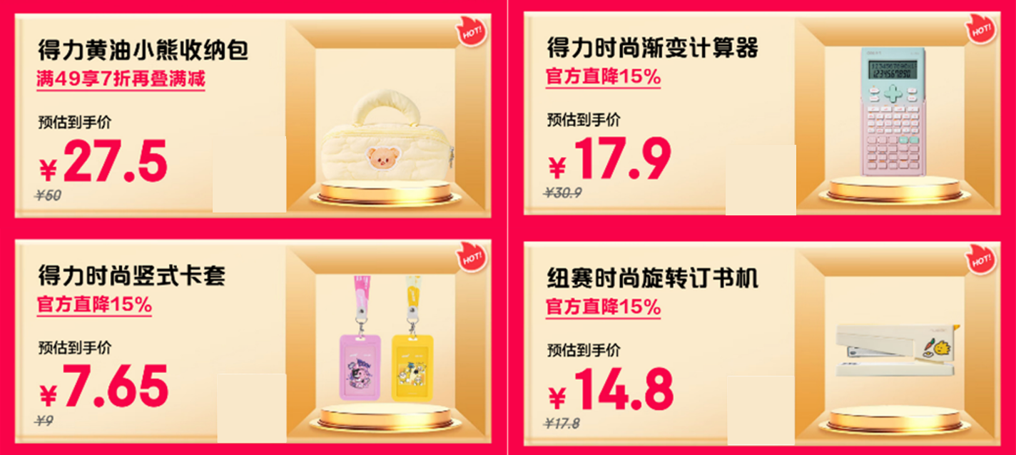 想要学习办公更高效,整洁的桌面是第一步!得力黄油小熊收纳包满49享7折再叠满减,27.5元就能把笔、橡皮等统统收纳,颜值实用双在线;计数时,得力时尚渐变计算器让账目清晰明了,官方直降15%后仅需17.9元;日常带校园卡、工作证,得力时尚竖式卡套便捷又美观,官方直降15%后7.65元,让重要证件不再丢失;办公装订文件有纽赛时尚旋转订书机,官方直降15%后,仅需14.8元就能轻松应对多角度装订,让纸张摆放规整有序。不管是校园学习还是职场办公,它们都能让你效率拉满!