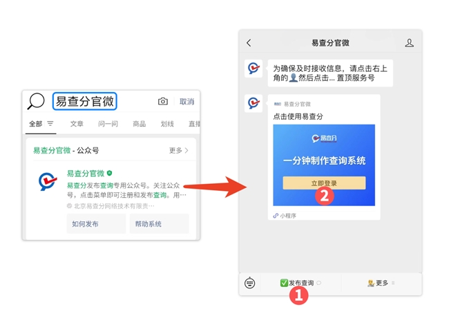 接入方式简单,微信搜索关注易查分官微服务号,点击【发布查询】,再点击推送的易查分官微小程序卡片即可进入免费使用。
