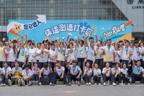 ▲学生们完成彩虹跑后开心合影。
