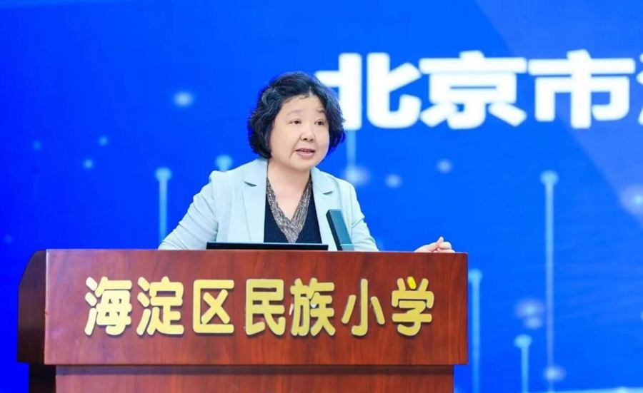 海淀区教育科学研究院吴颖惠院长为本次活动作总结讲话。她首先充分肯定了民族小学在人工智能教育应用上取得的“非常可喜的探索”成果,称赞学校将希沃系统等现有工具“用到了极致”,为全区学校提供了宝贵的典型范例。