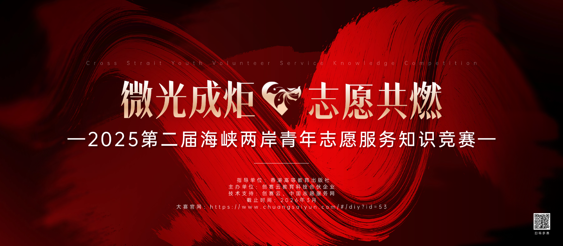 为深入贯彻国家“十四五”志愿服务发展规划精神,落实《关于支持两岸青年共同参与志愿服务工作的指导意见》,特举办本届海峡两岸青年志愿服务知识竞赛。本届大赛以“微光成炬·志愿共燃”为主题,旨在通过知识赋能深化两岸青年志愿服务能力建设,以政策法规普及、典型案例共析、服务经验互鉴为载体,构建常态化志愿服务知识共享平台,推动两岸青年在基层治理、社区服务、应急救助等领域形成协同实践力量,切实增强中华民族共同体意识。