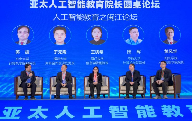 11月22日下午,两场高水平圆桌论坛精准聚焦人工智能教育的痛点。亚太人工智能教育院长圆桌论坛——“人工智能教育之闽江论坛”上,在北京大学计算机学院副院长郭耀的主持下,福州大学对外合作交流处处长于元隆、厦门大学信息学院副院长王晓黎、华侨大学计算机学院院长田晖、阳光学院人工智能学院院长黄风华等高校院长代表,围绕AI教育资源整合、区域协同发展等议题深入探讨,提出构建“省级统筹+校际联动+区域共享”的资源配置机制。