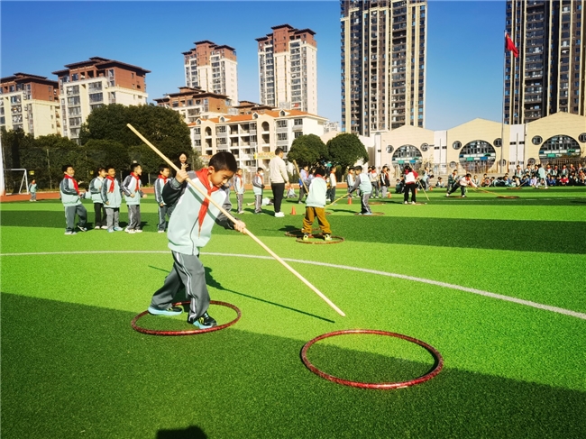 趣味项目同样精彩纷呈。“搭桥过河”考验协作默契,“划桨过河”比拼反应速度,师生们在欢笑中舒展筋骨,在配合中凝聚情谊,让运动的快乐浸润每颗心灵。