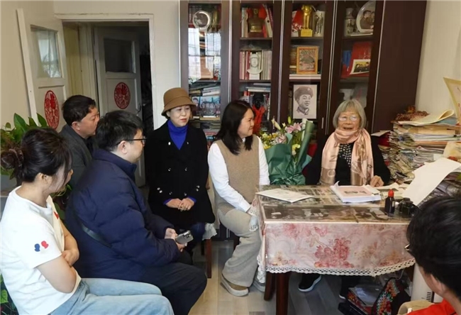徐海鹰带领学生拜访全国道德模范雷锋工友易秀珍老人,老人正在为师生们讲述生前雷锋故事。