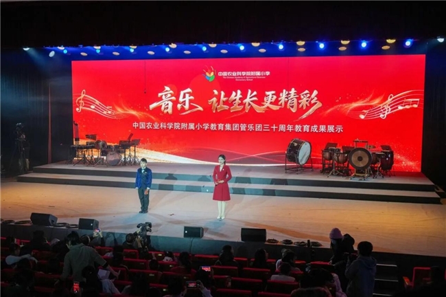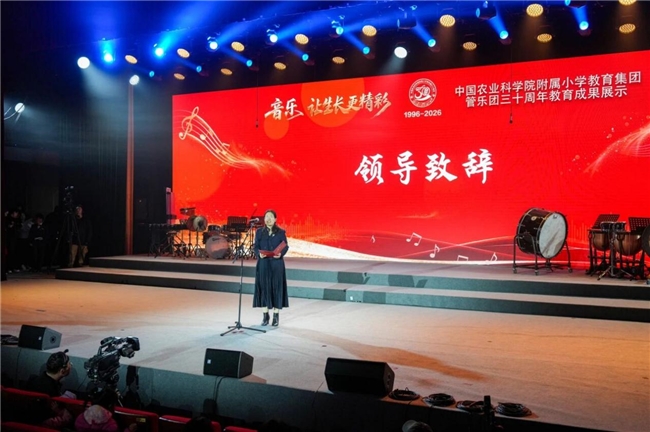 1月23日,“音乐 让生长更精彩”——中国农业科学院附属小学管乐团三十周年教育成果展示活动在中央财经大学学院南路校区学术会堂举行。海淀区教委、教科研机构、高校及共建单位的领导嘉宾,与师生、家长及社会各界代表齐聚一堂,共同回望农科院附小三十年来以音乐滋养生命、以美育托举成长的育人实践。
