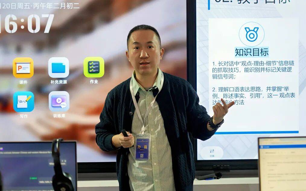 论坛期间,外研在线聚焦AIGC技术对教学的深刻影响,设置数字展区,对小U智能语言训练舱、学科型智慧教室、虚拟仿真实验教学系统、区域国别研究与人才培养AI平台、iTeach教师发展AI平台以及AI教师助手等进行了集中展示,并特邀南京邮电大学孙崀老师、天津外国语大学孙伟老师,以大学英语智慧教学课堂实践为例开展说课分享,展示了如何依托外研在线数字教育产品与服务,搭建学科型智慧教室,实现人才培养与教学提质增效。