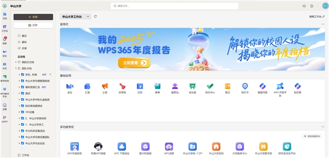 记者近日从中山大学网络与信息中心了解到,该校依托WPS 365打造的专属工作台已全面使用,整合近2000个文档团队、超90TB数据资产,为三大校区8万师生提供“一次登录、全场景访问”智能化服务,成为高校数字化转型标杆案例。